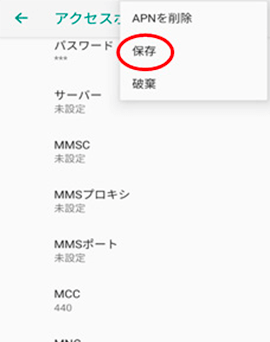 以下のAPN情報を入力します。他の項目は触らないでください。