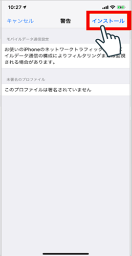 プロファイルのダウンロード許可をクリックし、ダウンロード後は画面を一度閉じてください。